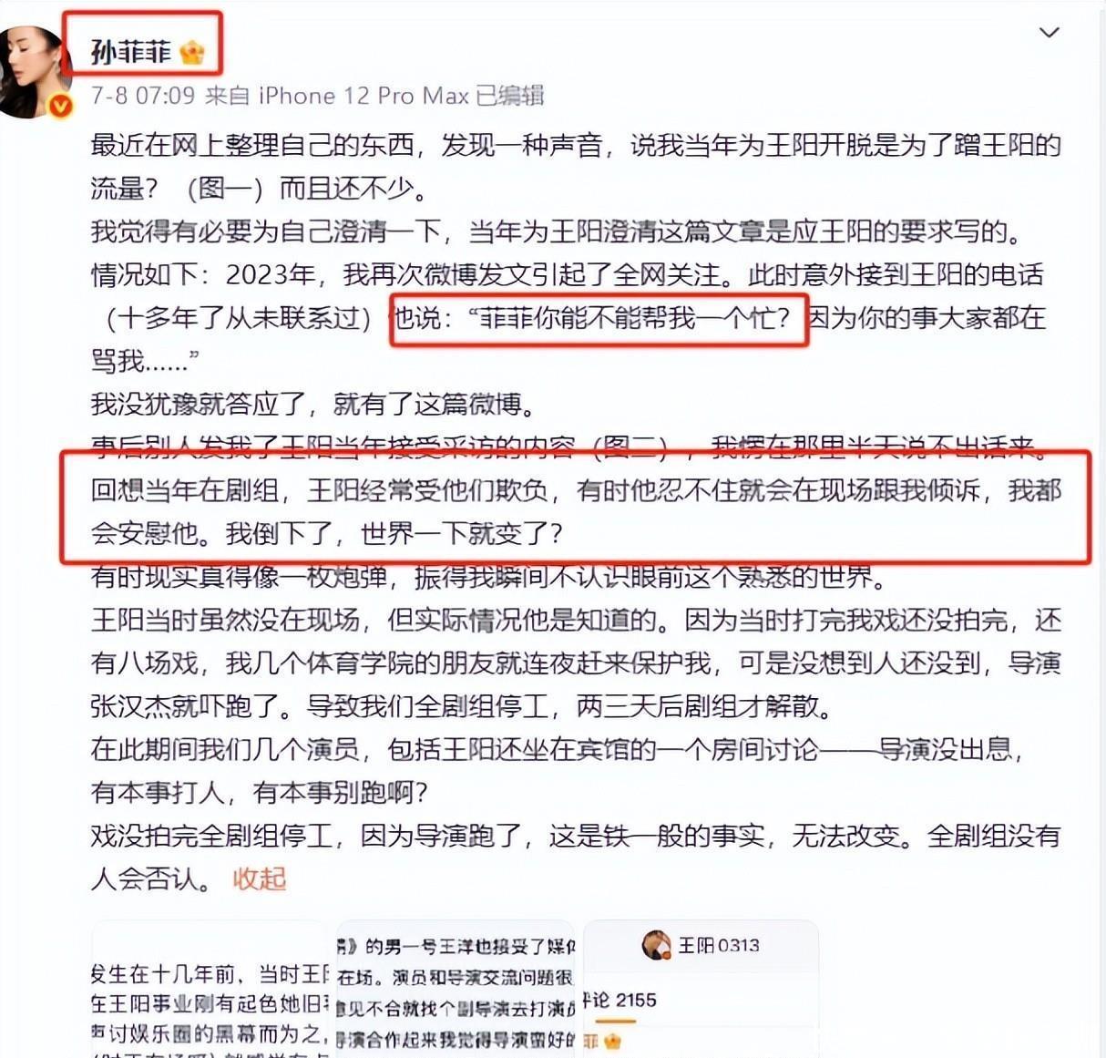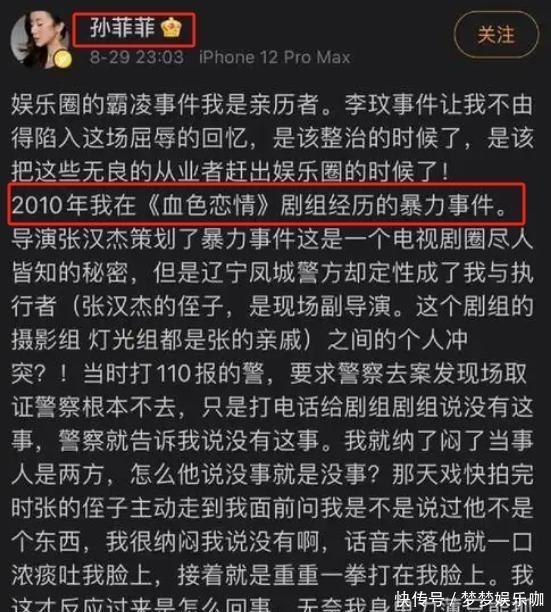 孙菲菲说2011年拍《血色恋情》时,因指脚本短处被导演等东谈主暴打,其时探员只罚了导演7天拘留200块。这事儿她两年前就说过,当今又翻出来,还扯出男演员王阳。孙菲菲说两东谈主其时一齐牢骚导演,但我方被打进病院后王阳却站在导演那儿,王阳自后回话说我方不知谈还让孙菲菲帮他表露。