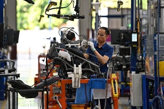 8月30日,越南永福,工东谈主在拼装摩托车。好意思国但愿进步好意思越相助以开脱对中国的过度依赖,但由于越南缺少高技能劳能源、基础门径薄弱,只可入口中国的零件和半制品到越南拼装再卖往好意思国。视觉中国供图